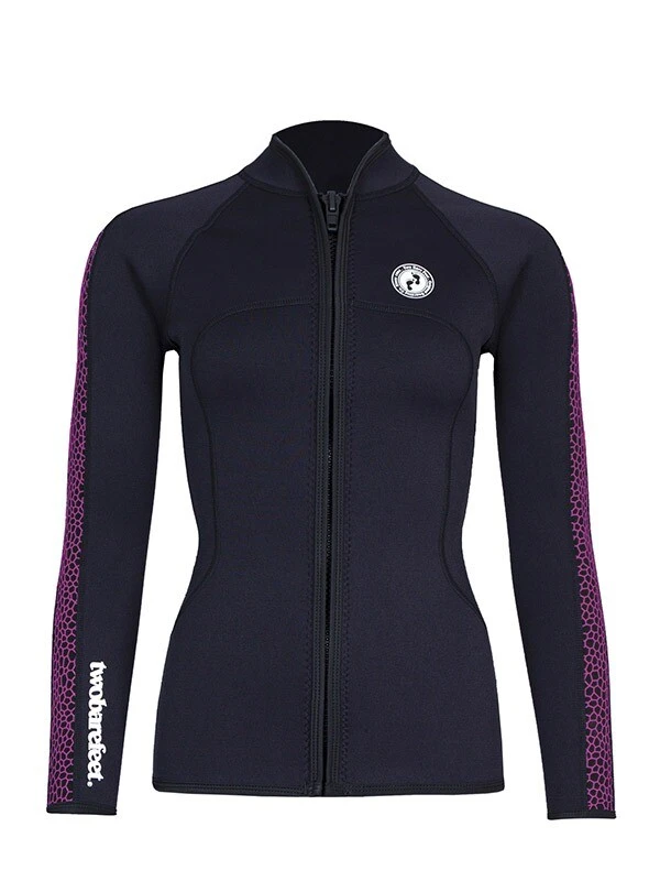 As part of the Two Bare Feet Silicone print series, this Womens neoprene jacket is extremely versatile, lightweight and soft to the touch. Featuring a full-length front zip and boasts a stylish silicone pattern. This Wetsuit Jacket offers the benefits of warmth and flexibility without the discomfort of a full wetsuit.